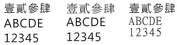 範例使用微軟正黑體, 第一個是所有Script, 第二個拉丁文, 第三個亞洲, 可看出各自影響文字的字型