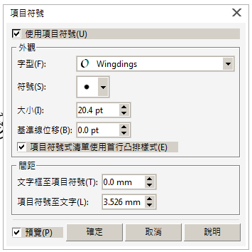 左行縮排, 右行縮排, 首行縮排(只適用段落文字)