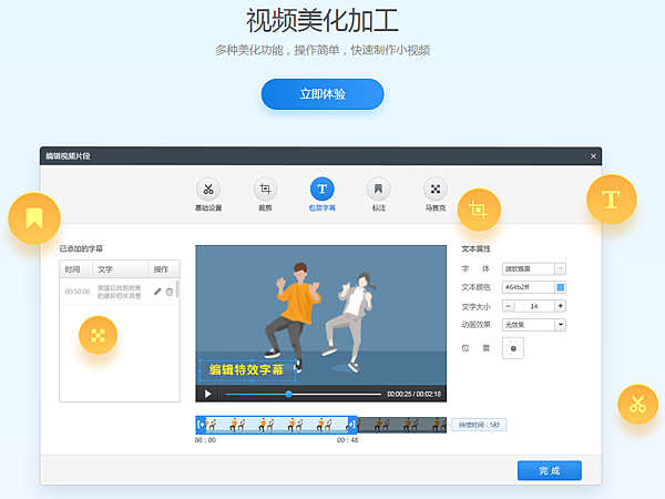 支援錄製網路影片, 可以在線邊看邊剪, 任意加上特效文字