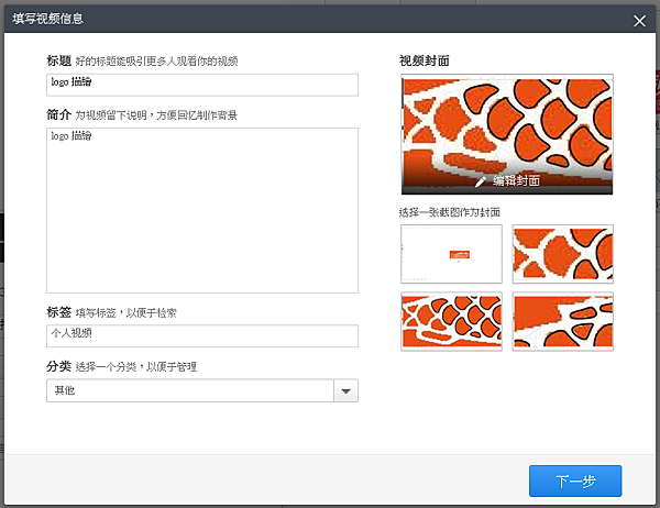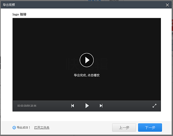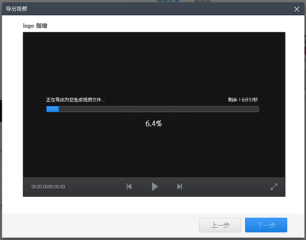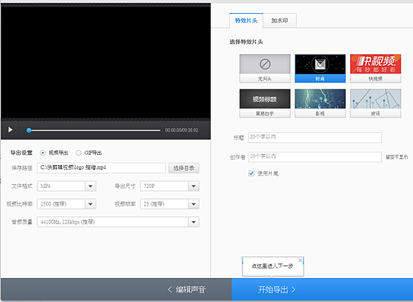 選導出格式, 片頭, 浮水印, 按下一步開始導出, 進入導出訊息