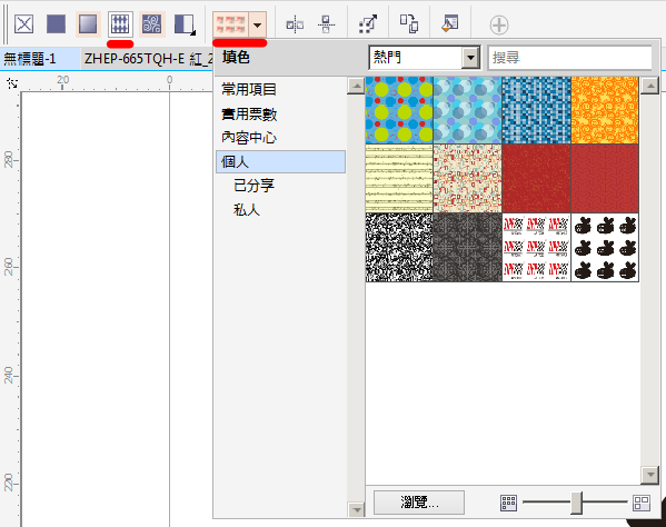 5. 點填色, 向量花紋, 再點旁邊的填色圖庫, 可以看到小飛魚花紋