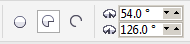 在屬性列, 選派形, 起始角度54, 結束角度126, 360/5=72(5花瓣)