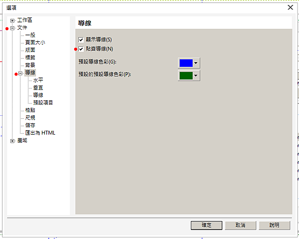 3. 從選項設定>文件>導線>有水平, 垂直, 導線, 預設項目可設定