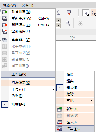 於是便想到CorelDRAW有一個功能, 就是匯出和匯入工作區