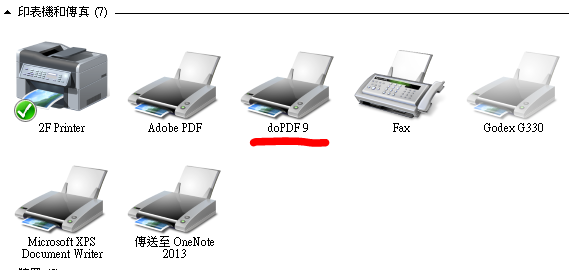 安裝後, 打開控制台的印表機和傳真, 會看到新增了一台doPDF9列表機