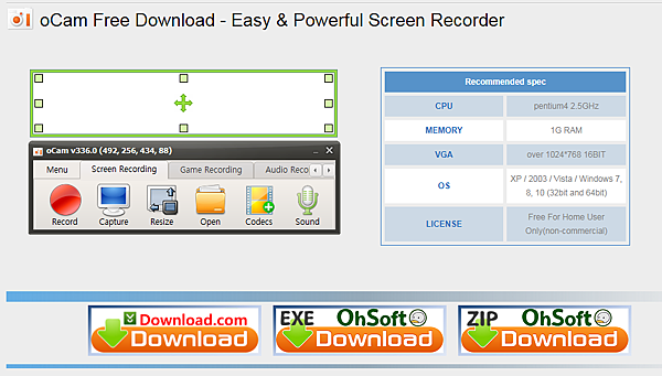 oCam 是一款設計簡單功能強大的免費螢幕錄影截圖工具