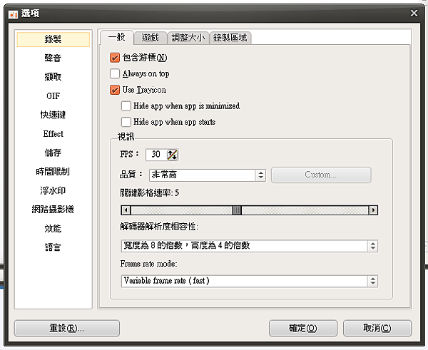 看一下快速鍵, 非常重要, 當你錄製時就會使用快速鍵, 可自定義