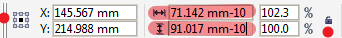 那在屬性列就, 要長寬-10mm, 物件原點要在中心, 不能鎖定縮放比例